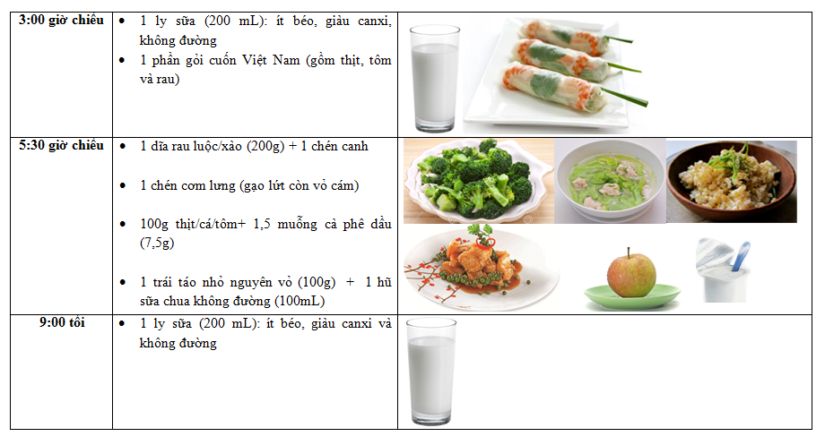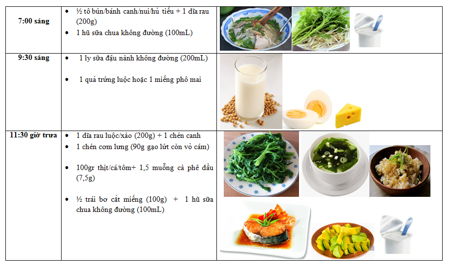 - Trong các bữa ăn nhẹ, bạn có thể chọn các thực phẩm có chỉ số đường huyết thấp như sữa tiệt trùng không đường, sữa chua không đường, sữa đậu nành không đường, trứng, phô mai, cuốn rau với tôm, thịt, v.v.