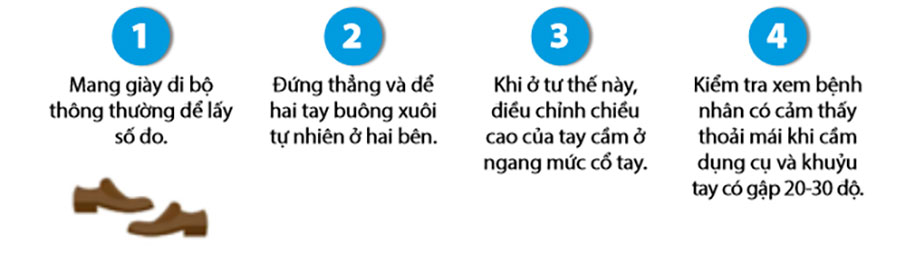 Đối với nạng khuỷu, khung tập đi và gậy, điều chỉnh tay cầm ngang cổ tay.