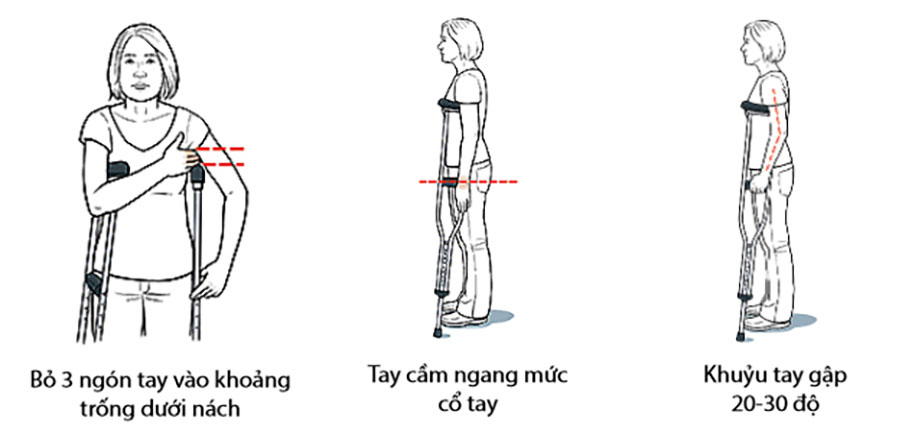 - Giữ nạng ở ngang tầm vị trí đang đứng;