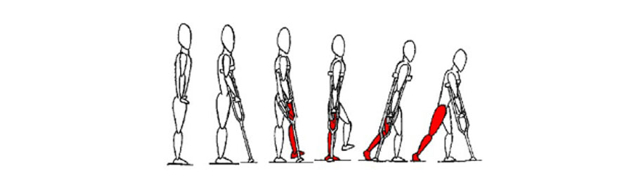 Cần sử dụng hai nạng hay khung tập đi. Tuân thủ mức chịu sức nặng một phần theo đề nghị của bác sĩ.
