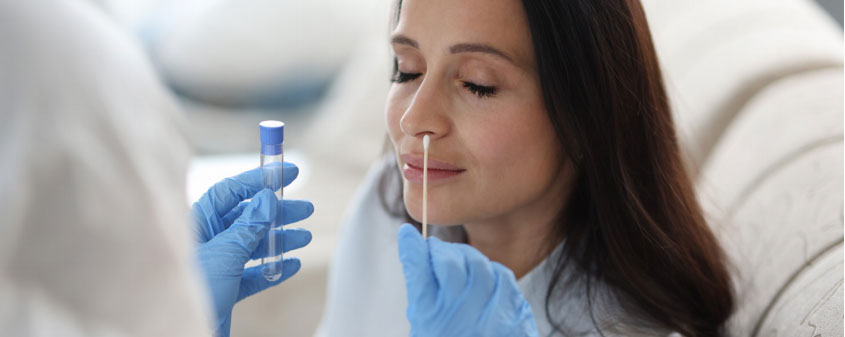 - Xét nghiệm nhanh Covid-19 được thực hiện, như xét nghiệm nhanh tại chỗ, với dịch tỵ hầu để phát hiện protein của coronavirus.