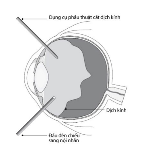 Bác sĩ phẫu thuật của bạn sẽ tạo ba đường mổ nhỏ qua củng mạc (lòng trắng của mắt bạn) và sử dụng những dụng cụ rất nhỏ để loại bỏ dịch kính từ bên trong.