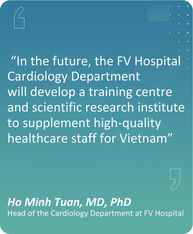With the advantage of their connections to major cardiology centres in the region, Dr Tuan often invites leading experts from around the world to FV Hospital to perform new techniques. Thanks to this, young doctors at FV have had the opportunity to learn advanced techniques and apply them to the treatment of patients in Vietnam.