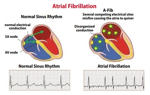- In some cases, the cause is not clear. For example, some cases of atrial fibrillation occur suddenly in otherwise healthy hearts. A section of the conducting fibres just becomes faulty and can trigger fast impulses.