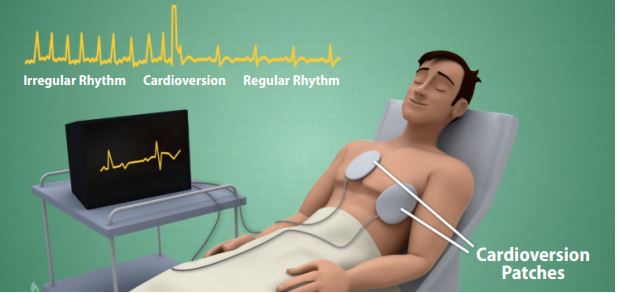 - Cardioversion: this may be used in the acute or elective option, most commonly for atrial fibrillation. Whilst under anaesthesia, you are given an electrical shock over the heart to restore a normal regular heartbeat. This may revert the abnormal rhythm back to normal.