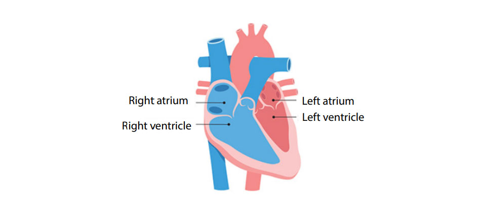 The heart is a highly efficient pump with 4 chambers. The 2 small upper chambers are called the right and left atria. The 2 larger, lower chambers are called the right and left ventricles.
