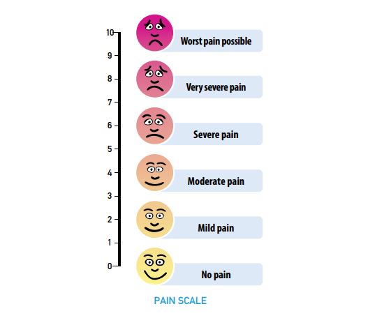 You will be asked to describe your pain on a visual scale or on a numeric scale between 0 and 10.