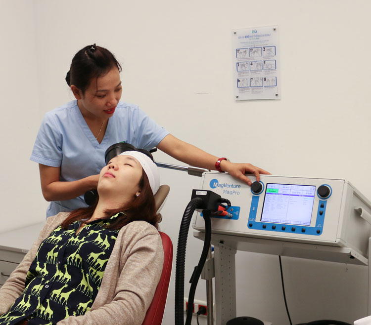 rTMS is usually well tolerated with minimal side-effects. There is no need for any anaesthetic or sedation and there are no adverse effects on memory and thinking ability. Side-effects are infrequent and usually minor: scalp discomfort, facial muscle twitching, mild headache and feeling of light-headedness. Most patients find side-effects reduce in intensity and frequency as the course of rTMS progresses. Though rare, rTMS does come with a small risk of seizures.