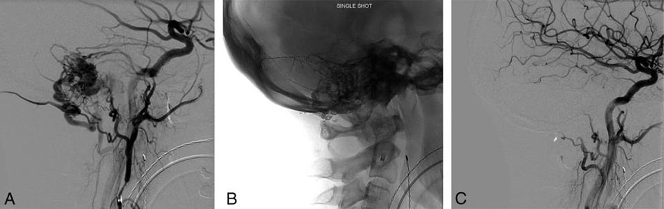 Endovascular embolization of vascular tumours is often done as a pre-operative procedure. The goal of this embolization is to reduce the amount of blood loss that is experienced at the time of surgery and also to make the removal of the tumour easier and potentially more complete.