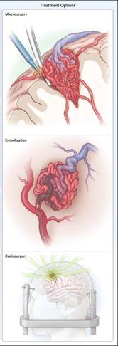 AVMs may be treated using three different treatment methods. These methods are embolization, surgery and radiation therapy or radiosurgery.