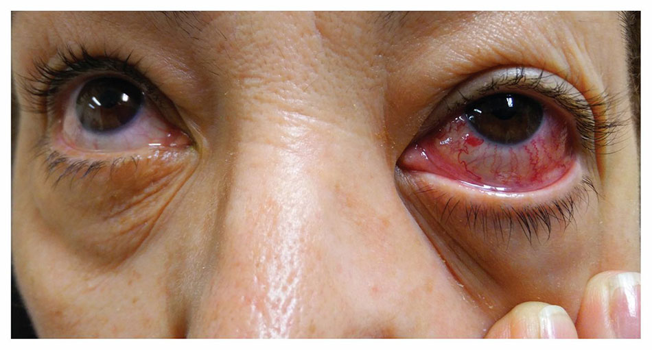 Symptoms can include eye pain, swelling and redness of the eye, double vision or loss of vision if untreated. These fistulae are often treated by an endovascular approach, putting a catheter in the artery or vein, and using material to block up the connection between the artery and vein. This material can include balloons, coils, and liquid glue.