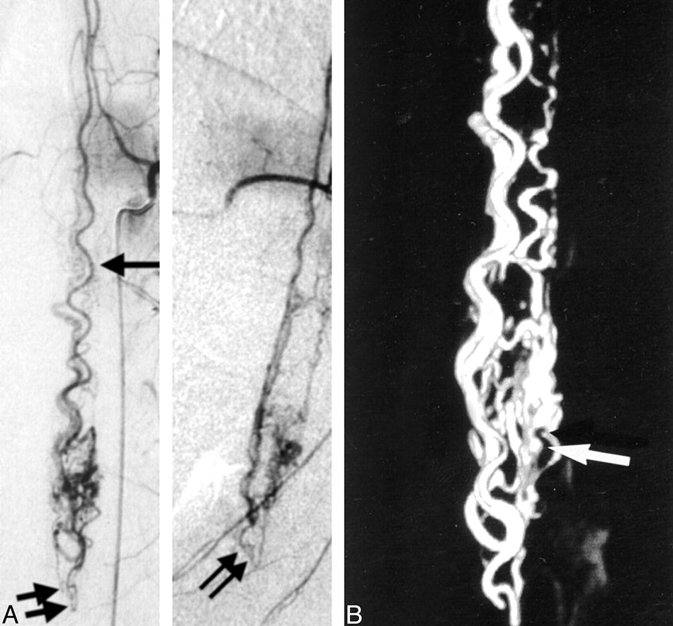 Spinal angiography helps diagnosing medical conditions that involve the arteries and veins of the spinal cord. This typically includes spinal cord vascular malformations, such as dural arteriovenous fistulas (DAVF) and arteriovenous malformations (AVM), but also certain types of spinal cord stroke and disorders involving the spinal cord venous system, such as spinal venous thrombosis
