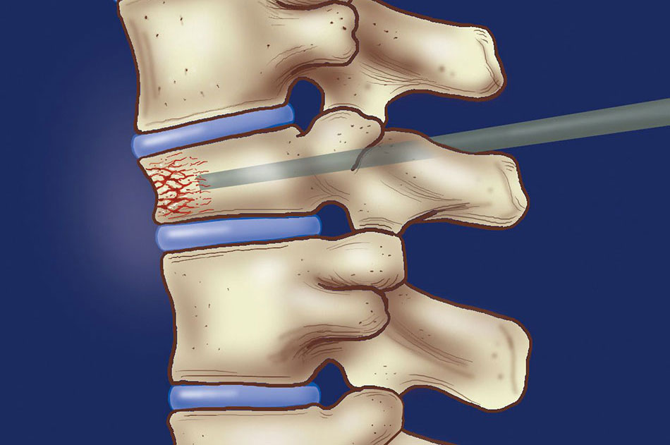 Now, endovascular neurosurgeons are able to offer a procedure called percutaneous vertebroplasty. This procedure is done under radiological guidance, so safe needle placement can be monitored closely. The neurosurgeon inserts a small needle directly into the vertebral body that is compressed. Once needle placement has been confirmed, Polymethylmethacrylate, a type of bone cement, is injected. This essentially strengthens the bone from within.