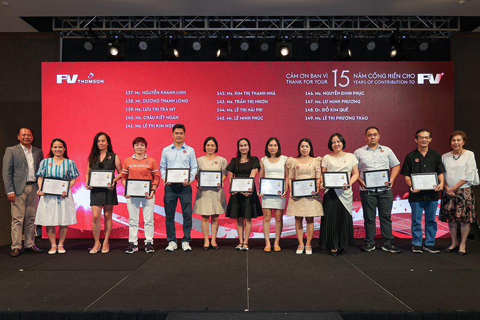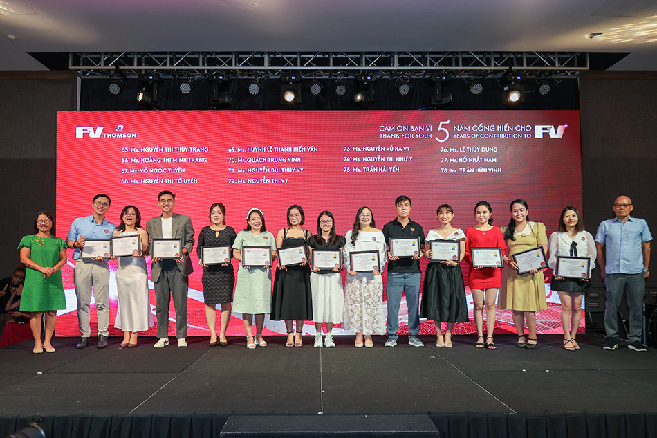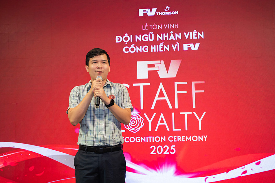 Representing the youngest group of awardees, those with five years of service, Mr Tran Huu Vinh, Marketing & Communication Officer, reflected on his time at FV: “I was part of FV during both its most challenging and most successful times, especially during COVID-19. These five years have been a beautiful journey, and I am honoured to continue contributing.” His role in strengthening FV’s image within the community and among colleagues has made his journey even more meaningful.