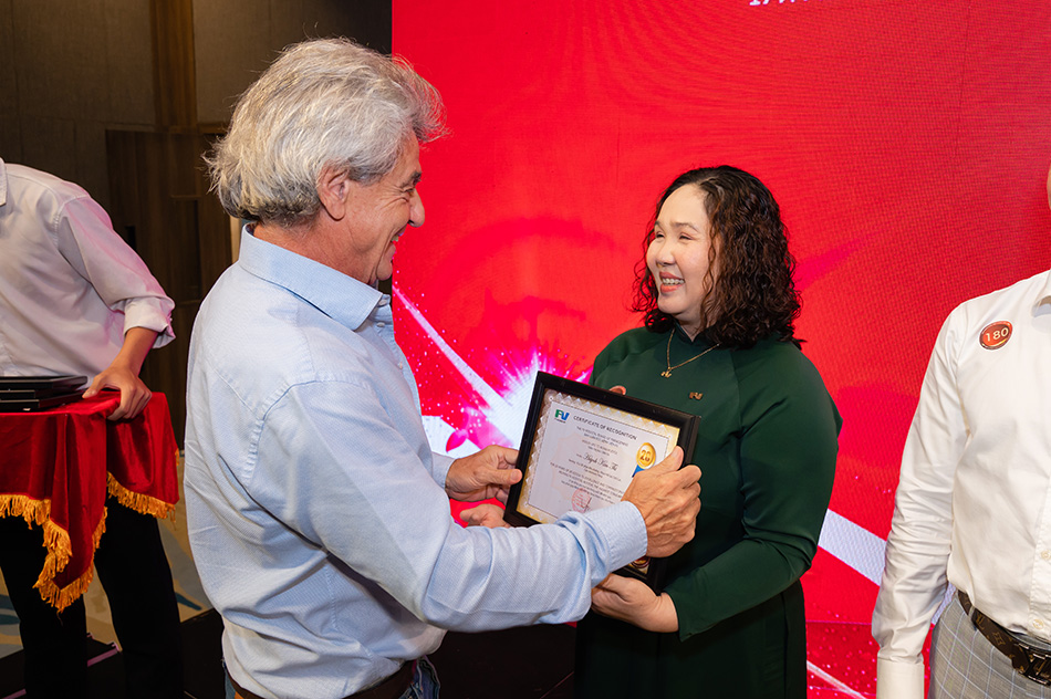 Representing the 23 honourees marking 20 years of service, Dr Nguyen Thi Lam Giang, former Head of Anaesthesiology and a highly respected figure at FV, moved the room with her simple yet touching message:“I have been here since the very beginning, and I’ve witnessed FV’s growth every step of the way. This has been a truly meaningful journey, and I am deeply thankful for my colleagues who’ve shared it with me. I hope the younger generations will continue writing this beautiful story of FV.”