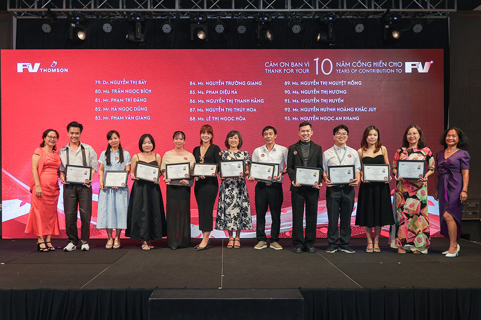 For the 45 staff members celebrating 10 years of service, the sense of pride was equally strong. Pharmacist Mai Vo Hoang Son expressed his gratitude for the journey alongside the Pharmacy Department and his FV colleagues: “Like many others here tonight, I am proud to have contributed tangible value to FV’s growth and to the health of our patients.”