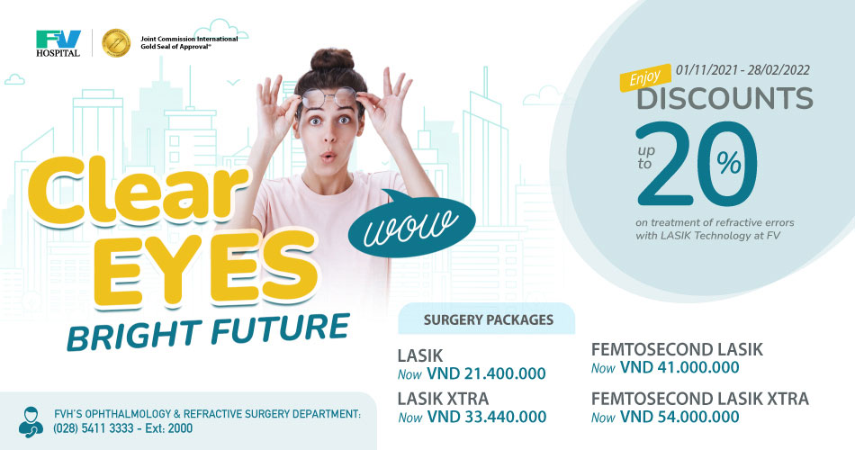 To make an appointment and benefit this special promotion, please call FVH’s Ophthalmology & Refractive Surgery Department at (028) 35 11 33 33, ext. 2000.
