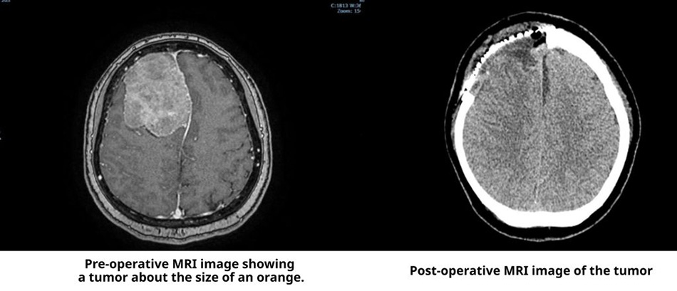 The surgery was further supported by an ultrasonic aspirator, which helped overcome the challenge of the tumour’s firmness. “For large, firm tumours like this one, manual removal can risk damaging surrounding brain tissue. The ultrasonic aspirator enables us to remove the tumour with minimal manipulation, reducing impact on brain tissue and protecting nearby vessels,” explained Dr Luong Anh.