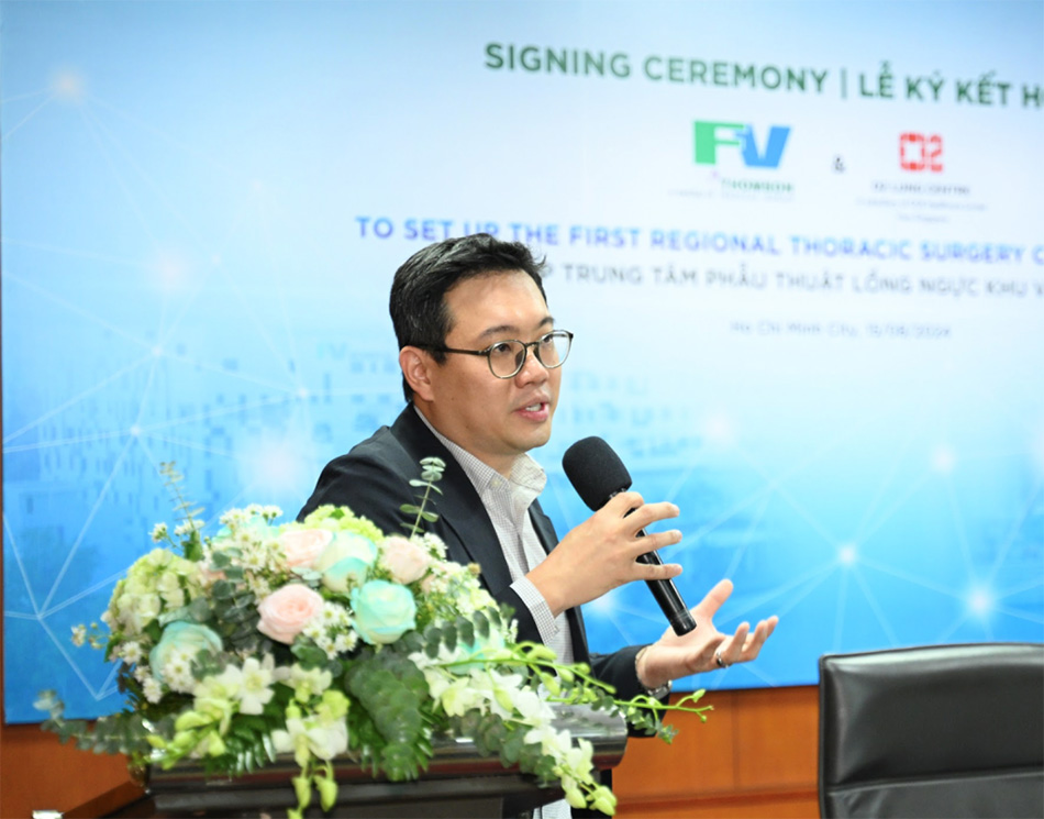 Present at the signing ceremony between FV Hospital and O2 Healthcare Group on August 15, 2024, at FV Hospital, Dr Melvin Heng, CEO of Thomson Medical Group, said: “O2 Healthcare Group is the first of 11 major medical centres in Singapore that we are partnering with to bring top specialists from Singapore to provide treatment to patients at FV Hospital. These specialists will address complex conditions in fields such as TAVR cardiac interventions, electrophysiology, vascular surgery, spinal surgery, neurosurgery, pelvic surgery, urological cancer surgery, head and neck surgery, liver treatment, oncology, and general surgery”.