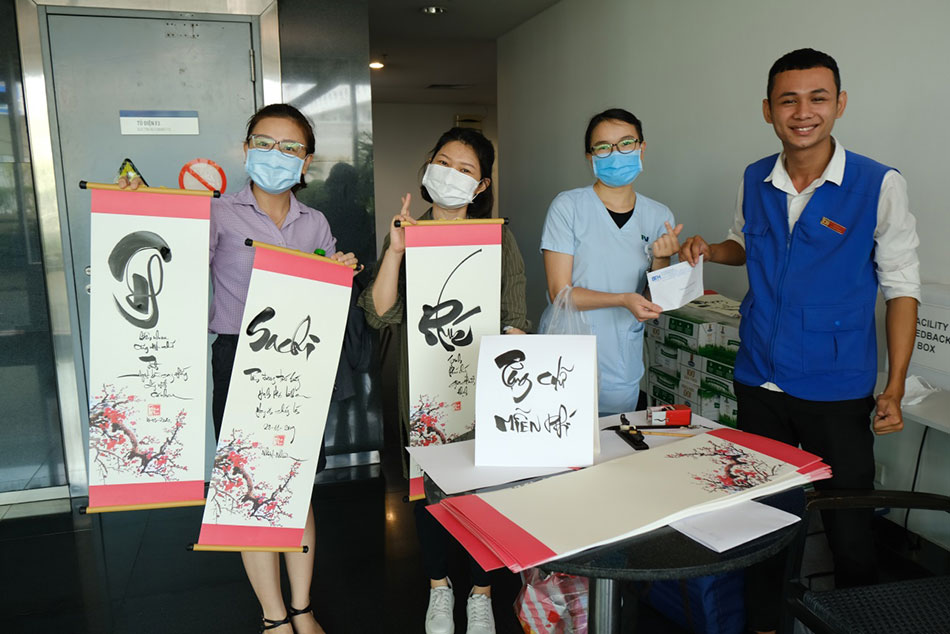 This year, besides the nutritional gifts for volunteers, the organisers also arranged for a calligrapher to produce ornamental writings for the participants. The complementary activity provided by the Hematology Blood Transfusion Hospital received a lot of attention from our staff as well as patients and their relatives. Many heart felt wishes were recorded during the event. Similar to the blood donation, giving good and meaningful wishes contributes to our wellbeing and a better life.