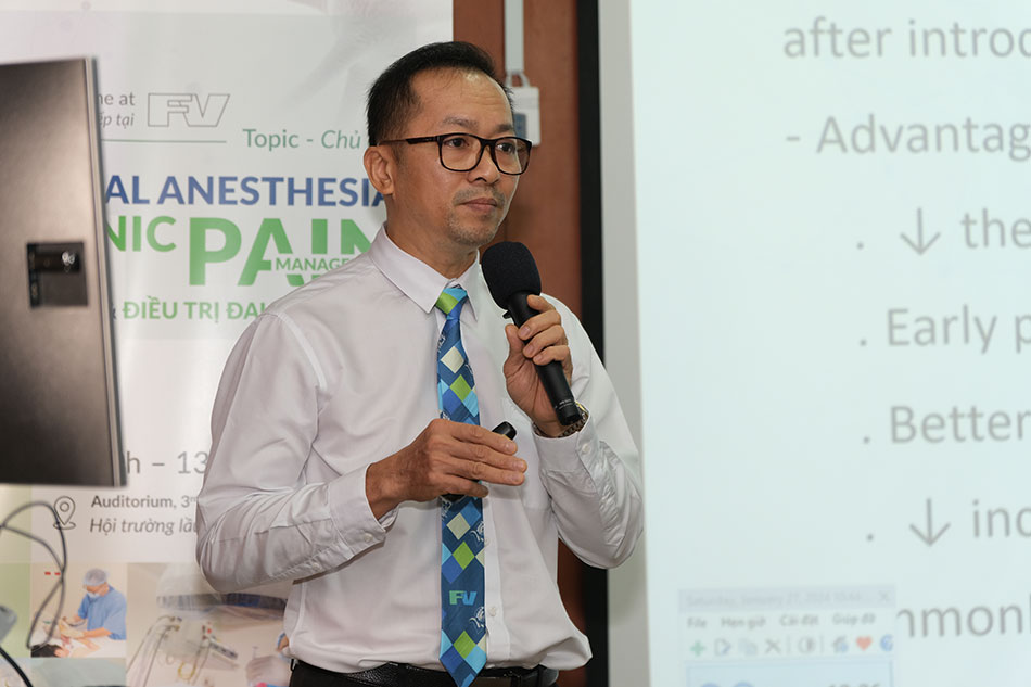 Dr Ly Quoc Thinh, Specialist Level II, Head of the Anaesthesiology & ICU Department, FV Hospital, presents the process of establishing regional anaesthesia services at FV Hospital.