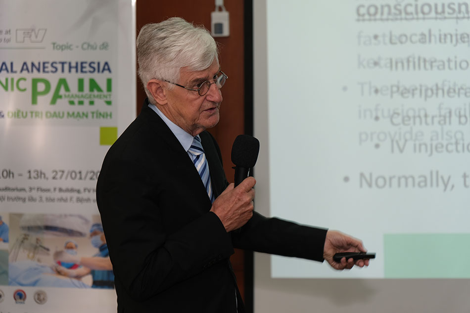 Dr Louis Brasseur, Head of the Pain Clinic, FV Hospital, provided an overview of current methods for managing and treating of chronic pain worldwide in his presentation, focusing on methods implemented at FV Hospital. He described pain treatment methods using medication for various surgical stages and for patients with cancer and neuropathic pain, as well as detailed neurolytic methods. This gave attendees an overall picture of the current state of the pain treatment field.