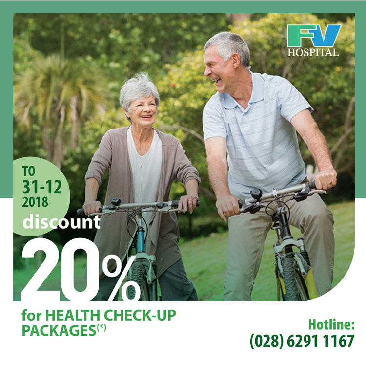 Because good health is golden, FV Hospital is pleased to offer a 20% discount on health check-up packages to help you safeguard your health. The programme runs from now until 31th December 2018.