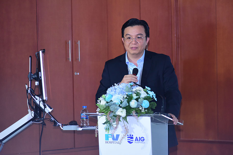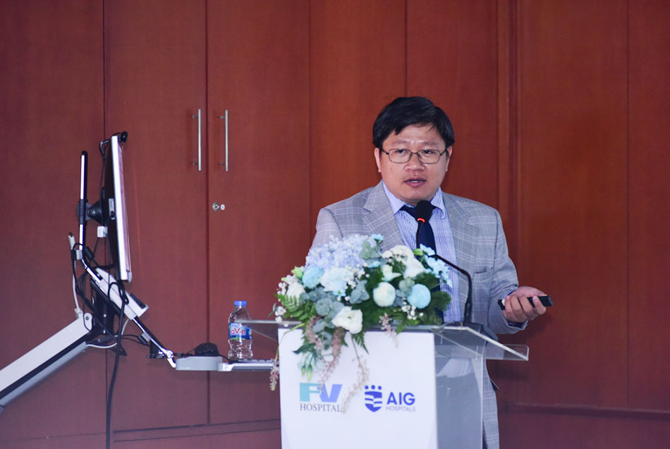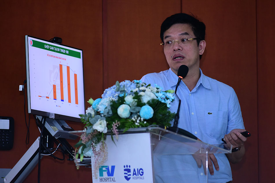 The report of Dr Phan Van Thai followed where he showed an overview of liver surgery at FV, and the plans to develop surgical techniques for liver diseases. Starting in 2003, FV Hospital has performed liver resection surgeries performed by a team of French and Vietnamese doctors. By 2016, this technique had been performed entirely by Vietnamese doctors. In the near future, FV will also invest in developing the team and equipment for liver transplant surgery, with support from AIG Hospital.