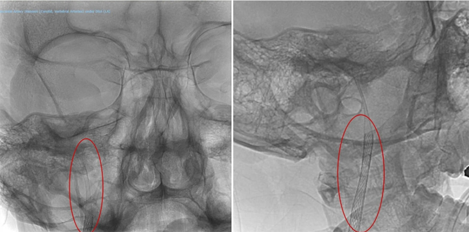 Before performing the procedure, Mr. A.M was fully informed by the doctor about his condition and the treatment method. Given the 80mm-long artery dissection, two overlapping stents were required to ensure the artery remained open and clear.
