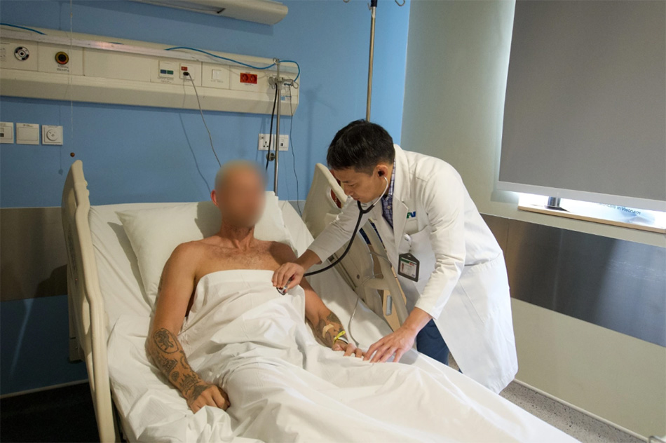 Ho Minh Tuan, MD, PhD, checks the patient’s health before discharge.