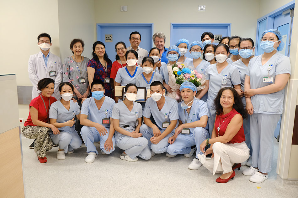 Ms Chu Thi Nguyet Anh (Head Nurse of Medical West Ward) on behalf of nurses working at the COVID-19 Treatment sincerely thanked the Board of Directors, especially the Nursing Director – Ms Lee Poh Lian, who closely followed the situation and accompanied the nursing team during the peak months of the pandemic. “There was a time when we were seriously short of staff and we thought we couldn’t work anymore. The feeling of not being able to let go of the patient while all the staff are overloaded added to our stress. Fortunately, the Board of Directors provided timely support and encouragement for everyone to overcome such a difficult period,” shared Ms Nguyet Anh.