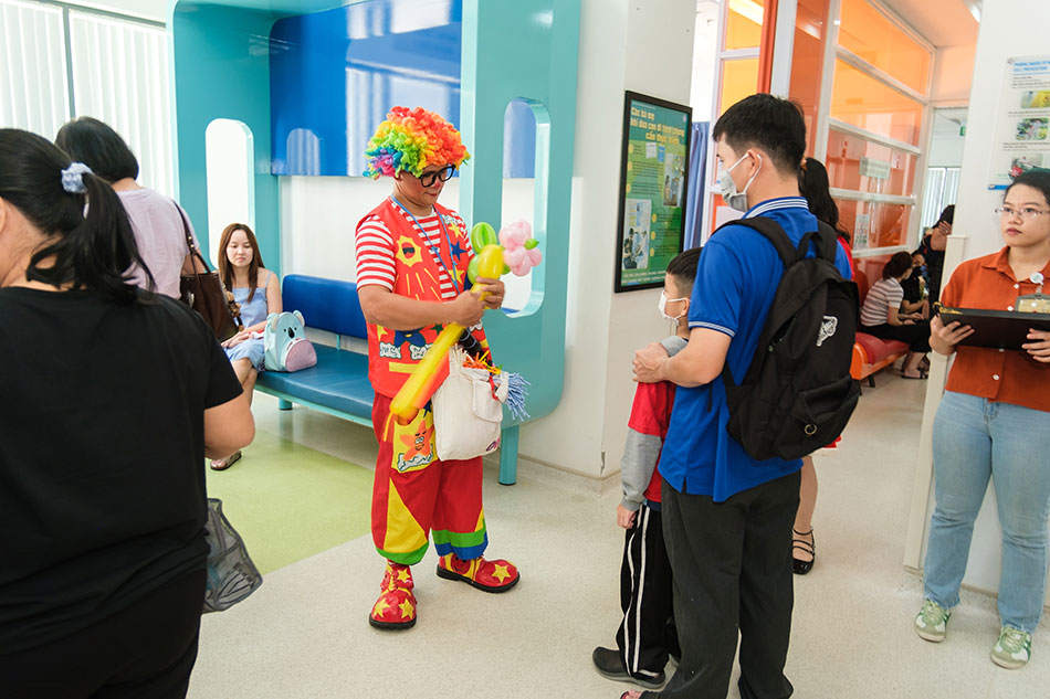 Children received gifts from the clown when visiting FV Hospital on 25th, December