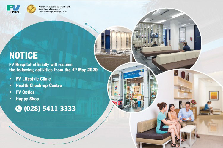 With the situation involving the Covid-19 epidemic transforming positively; the government has allowed the gradual restoration of social activities. Therefore, FV Hospital will resume operations to some areas, from the 4th May such as:
