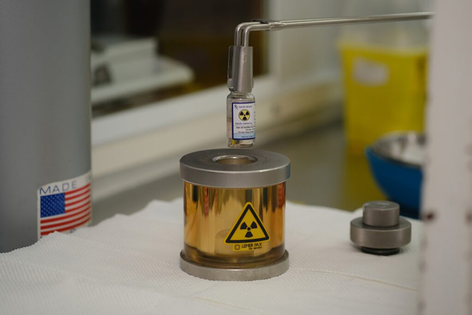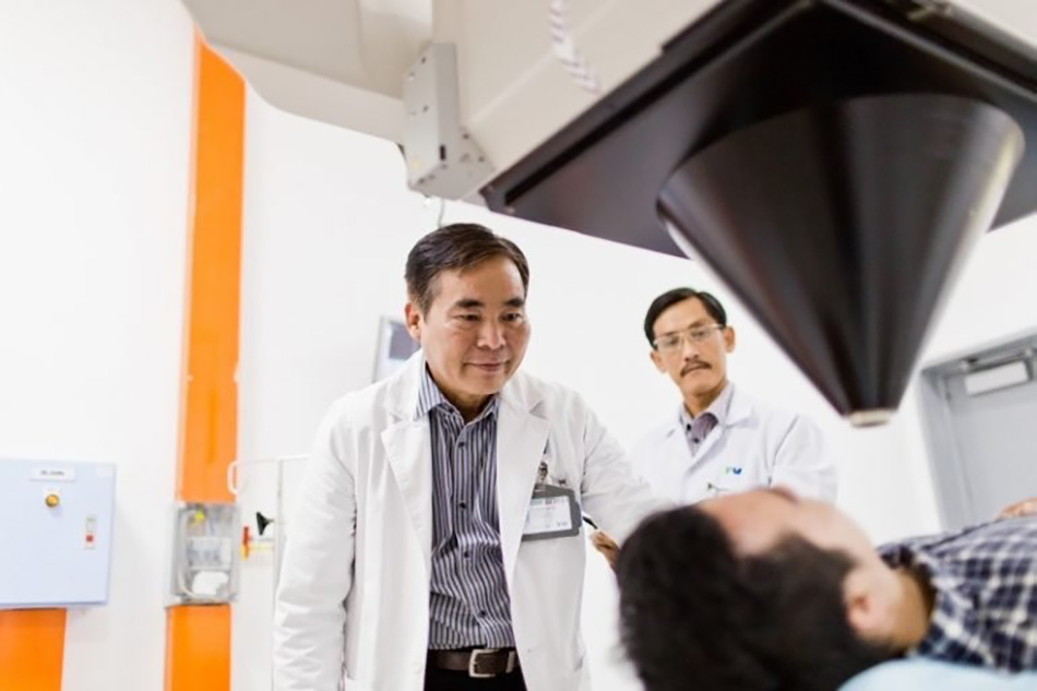 Dr Nguyen Van Te, Head of Nuclear Medicine Department at FV Hospital, performs thyroid imaging for patients.