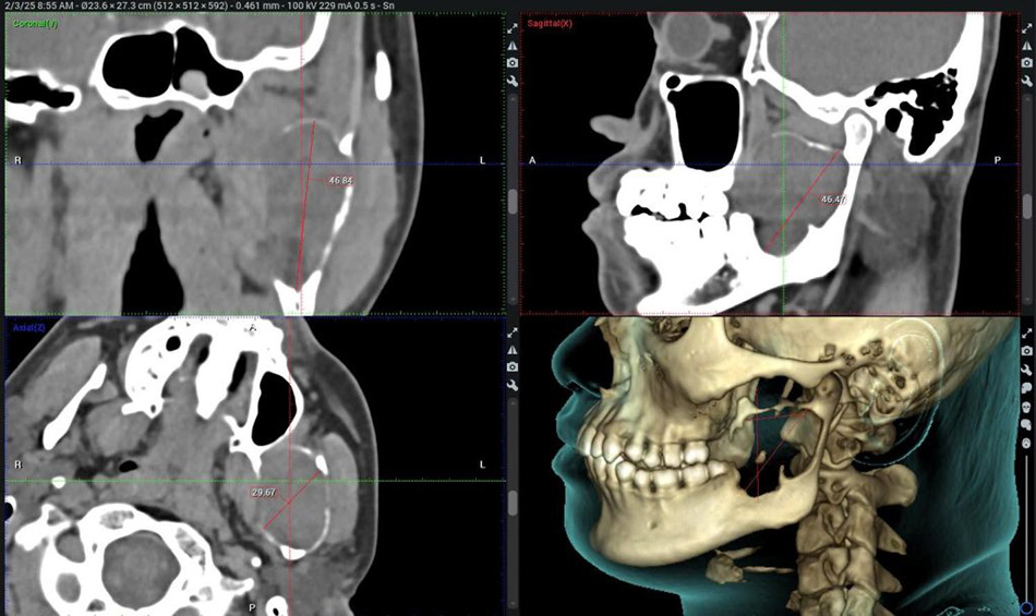 Had Mr C undergone traditional treatment, doctors would have performed a total resection of the left lower jawbone, followed by bone grafting to reconstruct it, using tissue from the fibula, ribs, or iliac crest. This major surgery carries a high risk of complications and can significantly impact both facial aesthetics and chewing function.