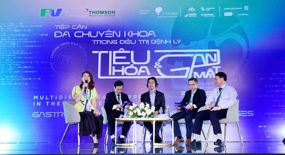 Dr Nguyen Viet Quynh Thu speaking at a CME conference featuring guest experts from Singapore