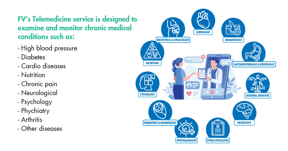 FV’s Telemedicine service can help patients by detecting symptoms early and monitoring chronic diseases, with the benefits of saving time and transportation costs.