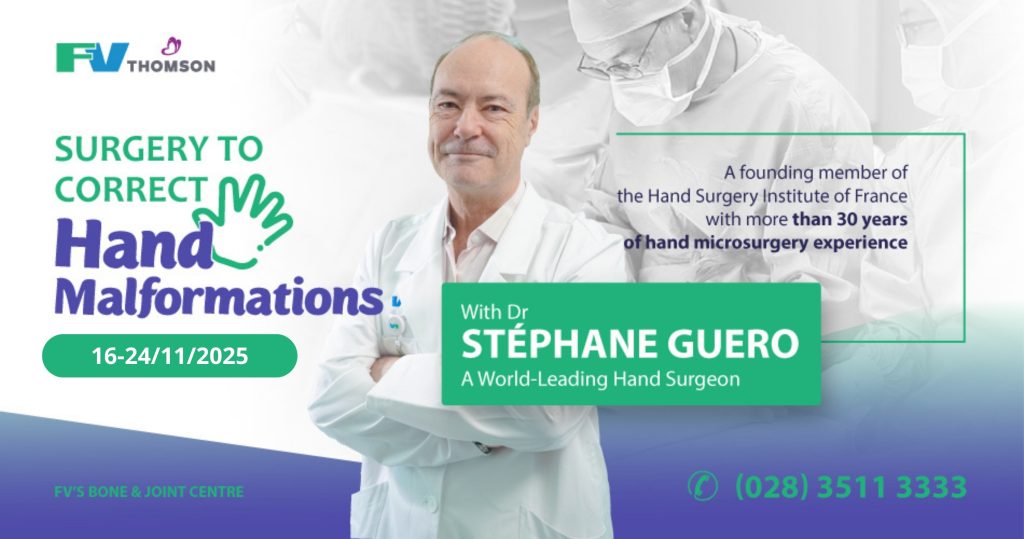 To book an appointment with Dr Stéphane Guero during his next visit from 16-24/11/2025, please contact FV Hospital’s Bone & Joint Centre: (028) 3511 3333.