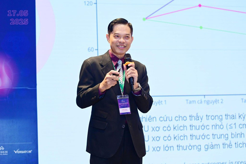 Bui Chi Thuong, MD, PhD – Head of Obstetrics, Nhan Dan Gia Dinh Hospital – delivered a presentation on uterine fibroids during pregnancy. Affecting 3-12% of pregnant women, fibroids can contribute to complications such as miscarriage, preterm birth, preeclampsia, and postpartum complications. However, the severity of these outcomes depends on the fibroid’s location, number, and size. Dr Thuong emphasised that women diagnosed with fibroids should not be overly anxious, but instead, they should attend regular prenatal check-ups and undergo frequent ultrasounds to monitor fibroid growth. This enables clinicians to make appropriate management decisions. In most cases, vaginal delivery remains the preferred option, and Caesarean section reserved for situations where it is medically indicated by an obstetrician.