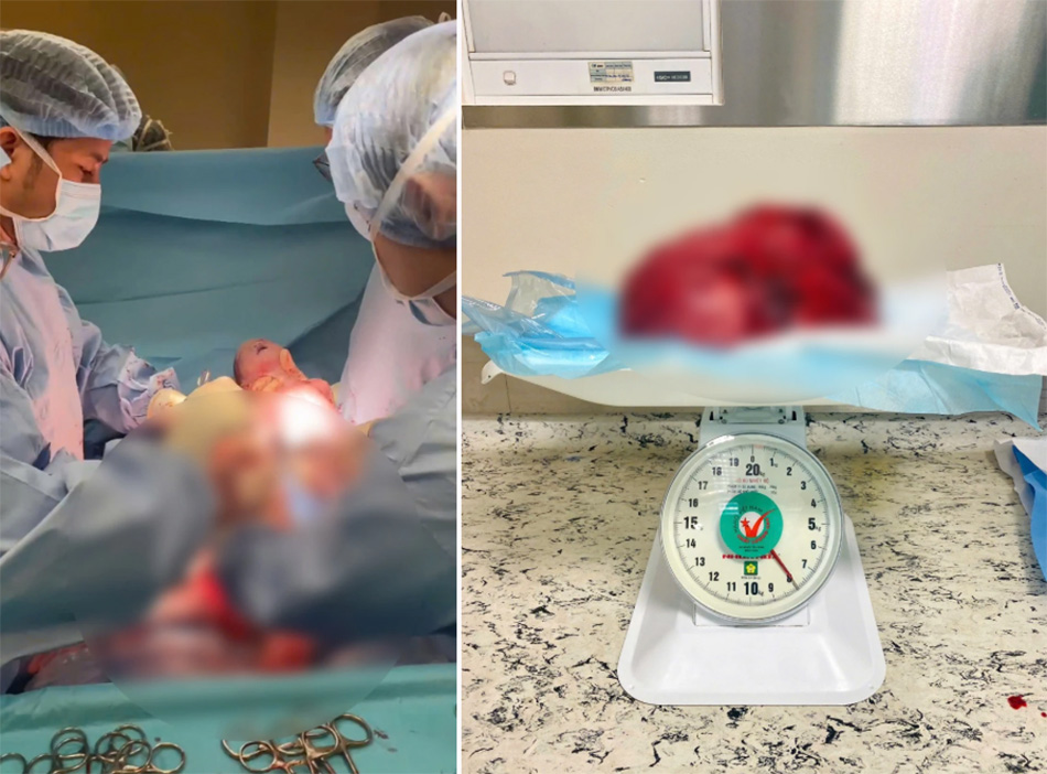 After successfully delivering the baby, Dr Dat proceeded with the hysterectomy. Given the high risk of bleeding associated with performing a hysterectomy after a caesarean section, only a partial removal was carried out. The fibroid removed weighed 8 kg. Reflecting on the case, Dr Dat admitted that in his many years of practice, this was an exceptionally rare and challenging situation-one he had previously only encountered in medical literature.