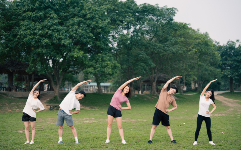- Hoạt động thể chất giúp tăng cường tuần hoàn máu, ổn định huyết áp và kiểm soát cân nặng.