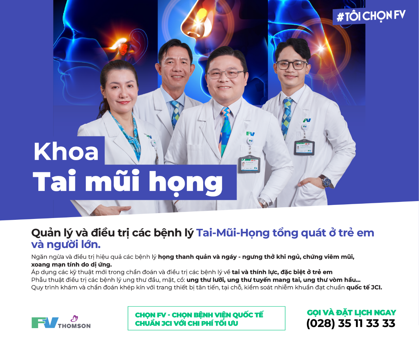 Nếu bạn đang phân vân không biết nên khám tai mũi họng ở đâu hoặc cần điều trị chuyên sâu, hay tư vấn về các vấn đề như nội soi tai mũi họng, phẫu thuật nội soi mũi xoang, dấu hiệu viêm amidan, đội ngũ FV luôn sẵn sàng lắng nghe và đồng hành để giúp bạn tái thiết lại nhịp sống khỏe mạnh, tự do hít thở, tự tin giao tiếp và vững vàng kết nối với thế giới.