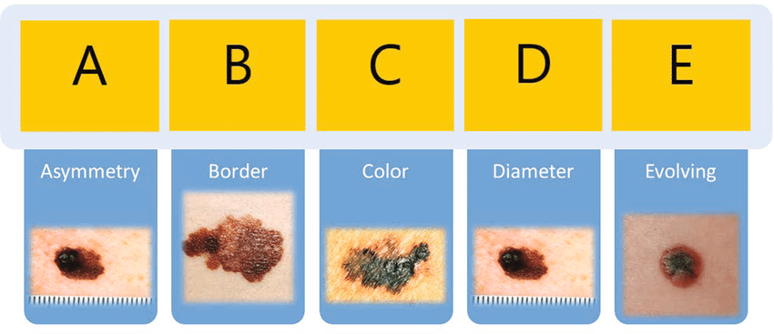 Quy tắc ABCDE giúp nhận diện nốt ruồi nghi ngờ ác tính: