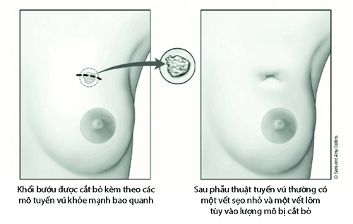 Bệnh nhân được phát hiện bệnh ở giai đoạn sớm với khối bướu nhỏ thì phương pháp tốt nhất là phẫu thuật bảo tồn. Phương pháp này giúp người bệnh lạc quan hơn vì không bị mất hoàn toàn bầu ngực nhưng bắt buộc phải điều trị bằng xạ trị sau mổ.
