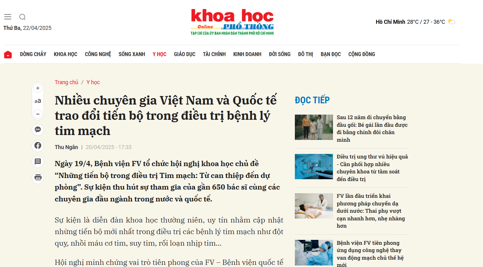 - 9.1 Báo chí nói gì về Khoa Tim mạch và tim mạch can thiệp FV?