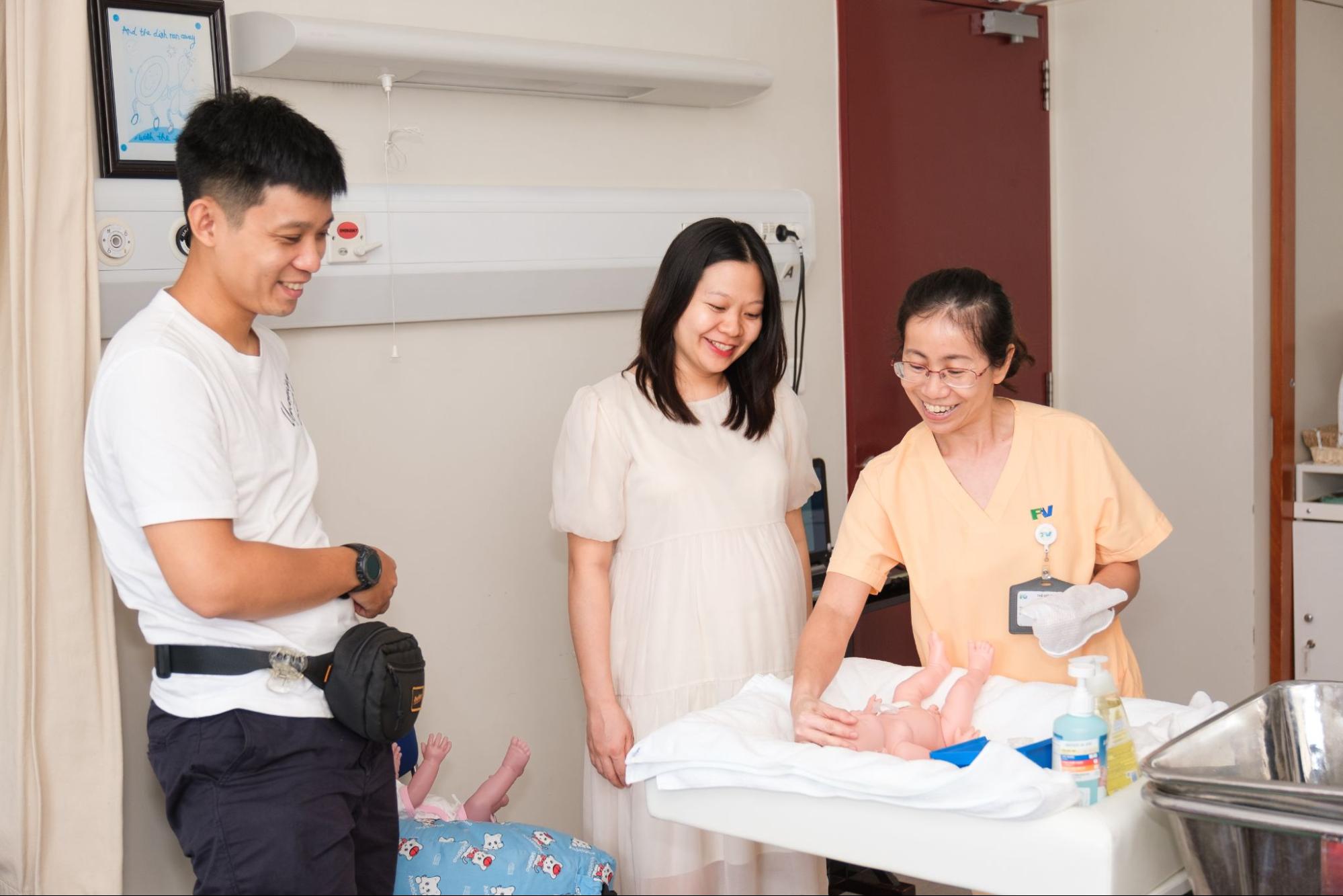 Lớp học tiền sản tại FV còn chú trọng đào tạo kỹ năng chăm sóc trẻ sơ sinh: từ tắm bé, thay tã, vệ sinh rốn, đến hướng dẫn nuôi con bằng sữa mẹ khoa học. Các chuyên gia sẽ giải đáp cụ thể những tình huống thường gặp như tắc tia sữa phải làm sao, giúp mẹ duy trì nguồn sữa ổn định và đảm bảo dinh dưỡng tối ưu cho con. Đồng thời, lớp học cũng cung cấp kiến thức về dinh dưỡng cho mẹ sau sinh, hỗ trợ quá trình hồi phục thể chất, phòng tránh tình trạng trầm cảm sau sinh và các rối loạn sức khỏe hậu sản.