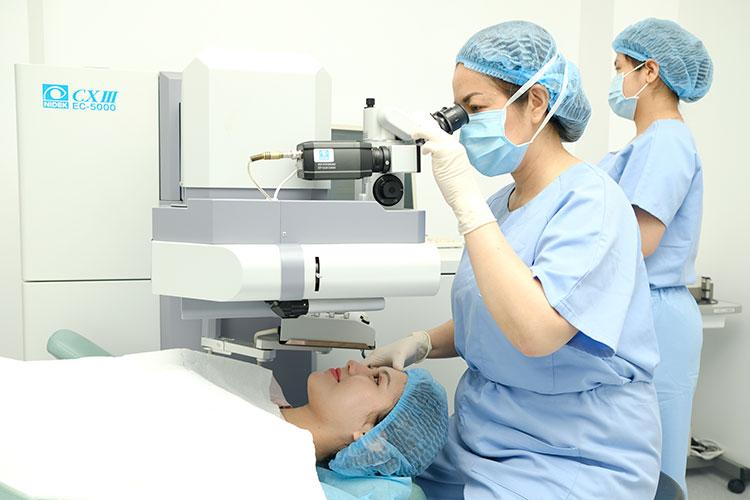 Một cơ sở tốt không chỉ có máy móc mà còn có quy trình sàng lọc chuẩn. Trước khi quyết định mổ mắt chữa cận thị, bệnh nhân được đo bản đồ giác mạc, pachymetry, đánh giá tear film và xét nghiệm bổ trợ để loại trừ nguy cơ như keratoconus. Quy trình này trả lời trực tiếp câu hỏi khi nào thì nên mổ mắt cận, vì chỉ khi kết quả xét nghiệm cho phép và khúc xạ ổn định thì phẫu thuật mới được đề nghị. Việc này giảm tối đa nguy cơ xảy ra các vấn đề lâu dài như loạn dạng giác mạc.