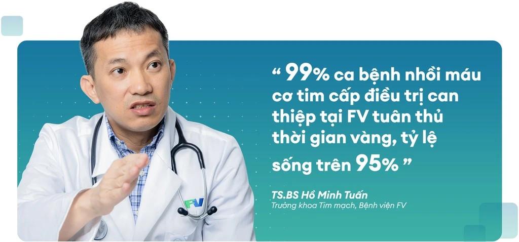 TS.BS. Hồ Minh Tuấn – Trưởng khoa Tim mạch và Tim mạch can thiệp, Bệnh viện FV là người đã đề ra tiêu chí khắt khe hơn trong cấp cứu tim mạch, tối ưu “70 phút vàng” trong điều trị nhồi máu cơ tim cấp.