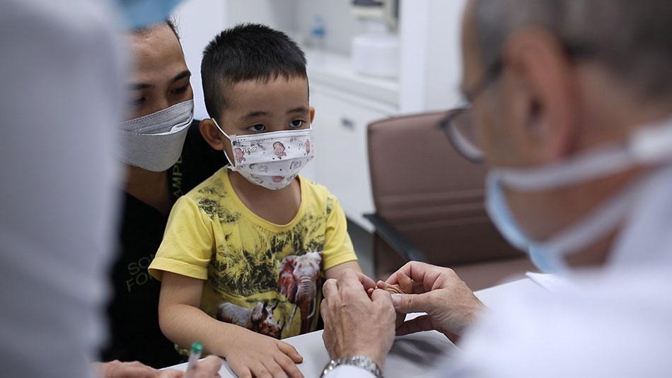 Bác sĩ Stéphane Guero – Khoa chấn thương chỉnh hình, Bệnh viện FV đang thăm khám cho bệnh nhi bị dị tật bàn tay. (Ảnh: Bệnh viện FV)