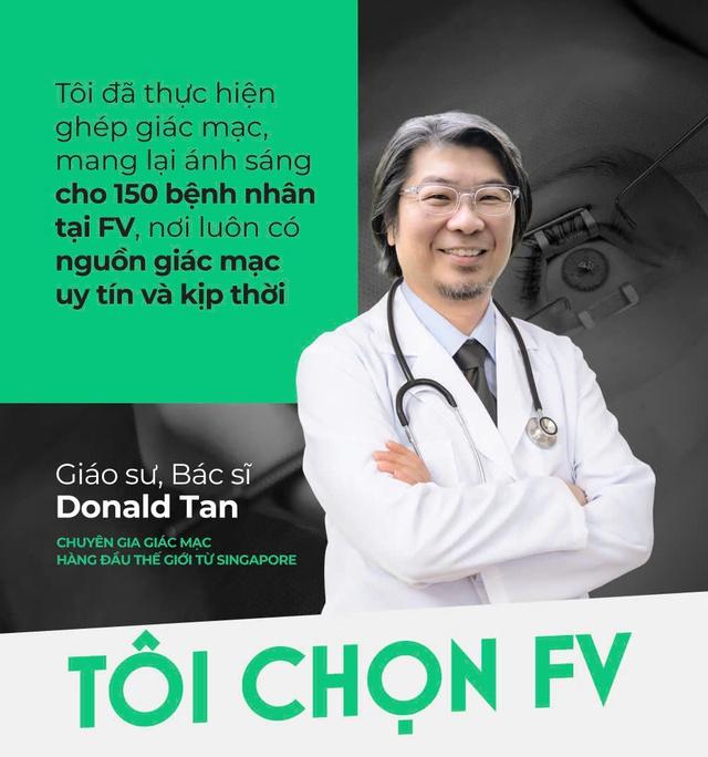 “Chỉ những giác mạc mà tế bào bên trong còn tươi mới, khỏe mạnh và trong suốt, được nhập khẩu từ các ngân hàng mắt lớn ở Mỹ và Singapore – những nơi xử lý và bảo quản giác mạc được hiến tặng hàng đầu thế giới – mới được chọn để cấy ghép cho bệnh nhân. FV là một trong những đơn vị y tế tư nhân đầu tiên tại Việt Nam tiếp cận được ngân hàng giác mạc của Mỹ, mở ra cơ hội cung cấp nguồn giác mạc chất lượng và kịp thời cho bệnh nhân. Đây cũng là một lý do quan trọng mà tôi lựa chọn hợp tác cùng Bệnh viện FV”, bác sĩ Donald Tan chia sẻ.